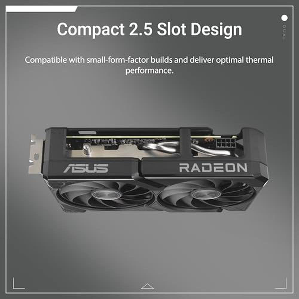 ASUS Dual Radeon RX 9060 XT 8GB GDDR6 Graphics Card | PCIe 5.0, HDMI 2.1b, DisplayPort 2.1a | 2.5-Slot Design with Axial-tech Fan Design and 0dB Technology