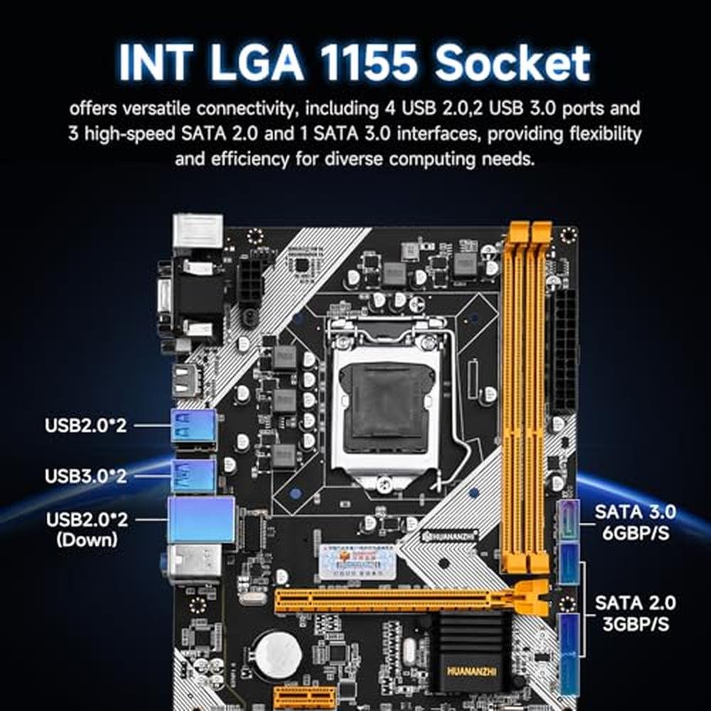 Computer Motherboard, HUANANZHI B75 M-ATX Gaming PC Motherboard for Desktop (Win 7/10, DDR3 16GB, SATA3.0, USB 3.0), INT LGA 1155 Motherboard for PC Computer Desktop