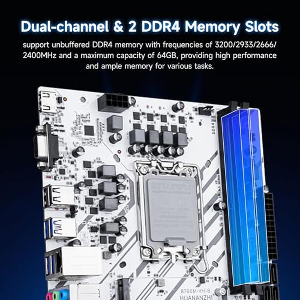 Computer Motherboard, HUANANZHI B760M-VH-B Micro-ATX Gaming PC MotherboardDDR4 64G, SATA3.0 6Gbps, USB3.2 10Gbps, HD-MI2.0, PCIE 4.0 INT LGA 1700 Motherboard for PC Computer Desktop, White