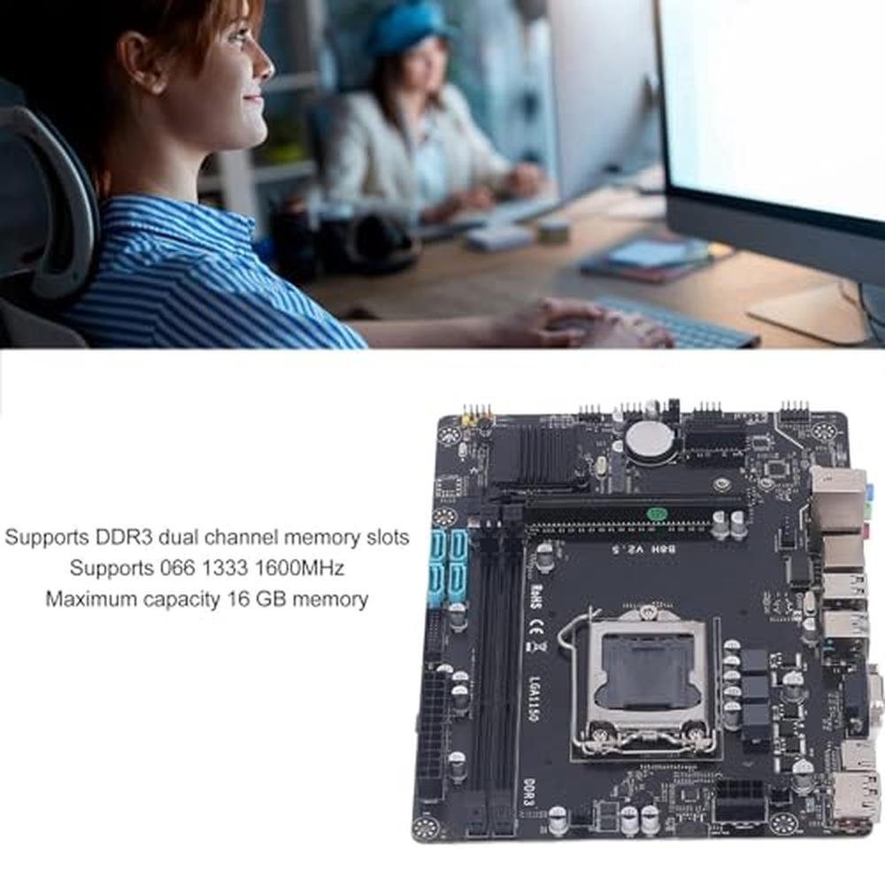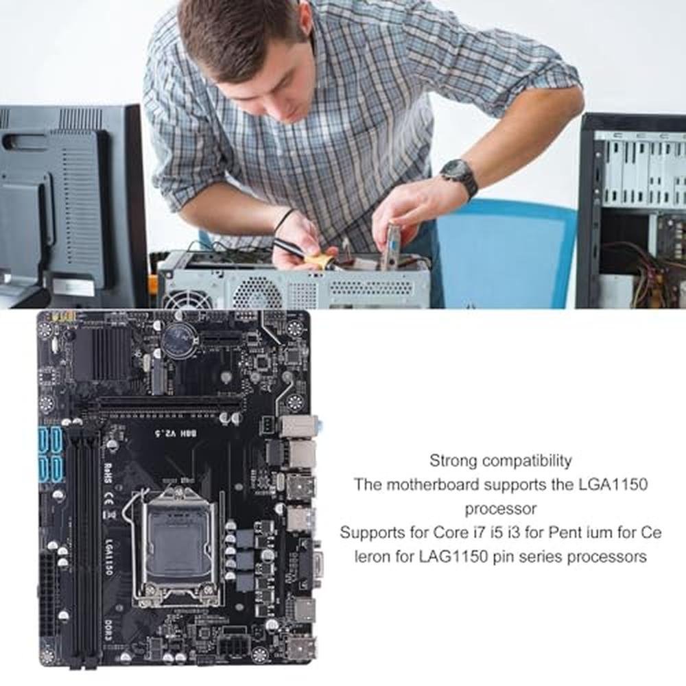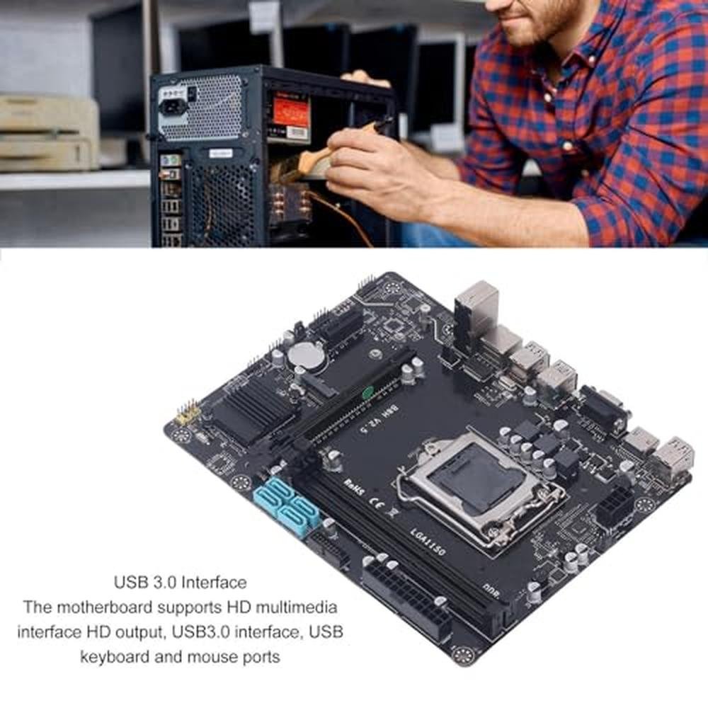 1. STRONG COMPATIBILITY: This motherboard supports LGA1150 processors, support for Core i7 i5 i3 for Pent ium for Ce leron for LAG1150 pin series processors.2. DDR3 CHANNEL MEMORY SLOT: The gaming motherboard supports DDR3 channel memory slot, supporting 066, 1333, 1600MHz, with a maximum capacity of 16G memory.3. USB 3.0 PORTS: The motherboard supports HD multimedia output, USB 3.0 ports, and USB keyboard and mouse ports.4. SATA PORTS: The gaming motherboard supports SATA ports and is compact and easy to install. Easy to use, high compatibility.5. PCB MATERIAL: B85 desktop computer motherboard is made of PCB material. Better PCB means better electrical stability, better heat dissipation and longer lifespan.Spec:Item Type: B8H B85 Gaming MotherboardMaterial: PCB, MetalBuilt in Battery: CR2032 Battery x 1 240mAhCPU Support: LGA 1150Memory Slot: 2 x DDR3Memory Capacity: Maximum 16GB USB Interface: 4 x USB2.0 2 x USB3.0SATA Interface: 4 x SATA3.0Network Card: Gigabit LAN CardGraphics Card Slot: 1 x PCIEx16Expansion Interface: 1 x PCIEx1 1 x M.2How to Use:Install and use.PackageList:1 x Motherboard1 x Metal Plate1 x Connecting Cable
