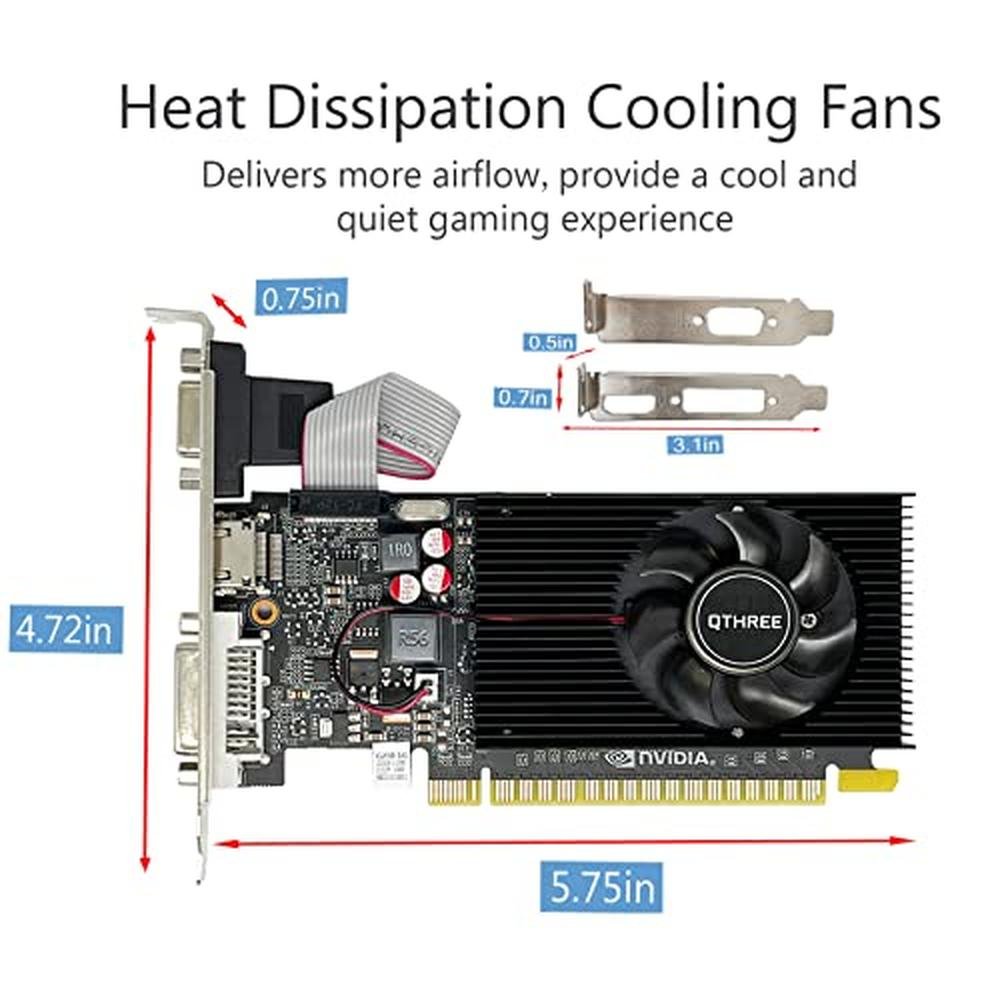 - Low Profile DesignThe computer graphics cards is small in size and saves more space,easy to install,plug and play,you can build a compact PC system easily for slim/ITX chassis.