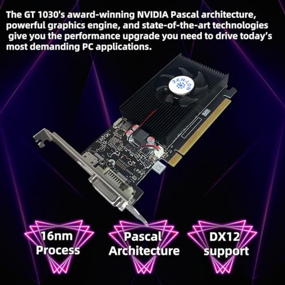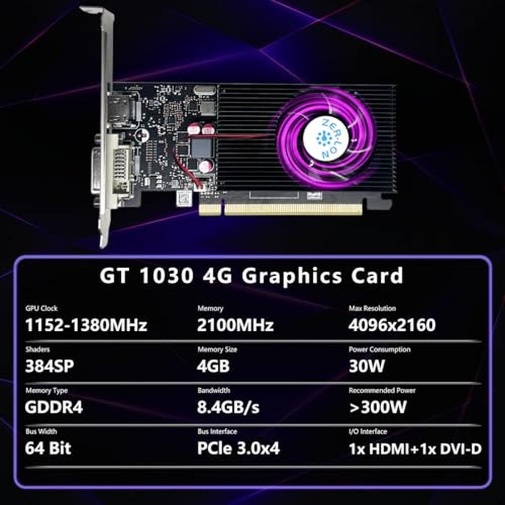 - High Performance: The ZER-LON GeForce GT 1030 4G Low Profile Graphics Card features a powerful GPU boost clock of up to 1380 MHz and 4GB GDDR4 memory with a speed of 2100 MHz. This ensures smooth and lag-free performance, allowing you to enjoy your favorite games and multimedia content without any interruptions.
