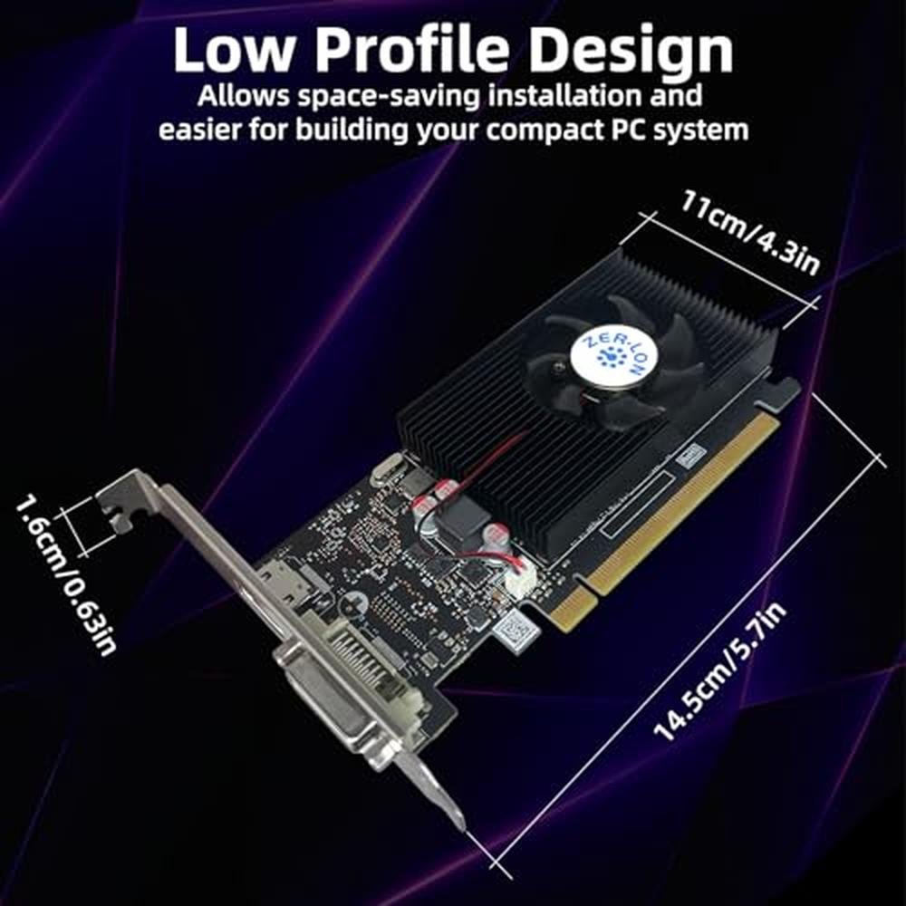 - Versatile Compatibility: Whether you're building a compact computer system or upgrading an existing one, the low-profile design of this graphics card saves valuable installation space. It is easy to install and compatible with ITX chassis, providing flexibility in various PC setups. Furthermore, it supports Win11 and DirectX 12, ensuring compatibility with the latest software and games.