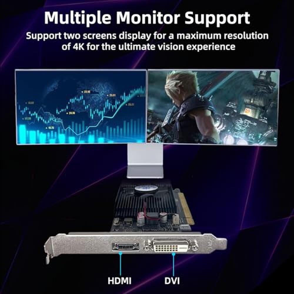 - Multi-Monitor Productivity: Take advantage of the dual outputs on this graphics card to enhance your productivity. With 1x HDMI and 1x DVI-D ports, you can connect up to two monitors simultaneously. This allows you to multitask efficiently, whether you're working on multiple projects, streaming content, or managing your workflow with ease.