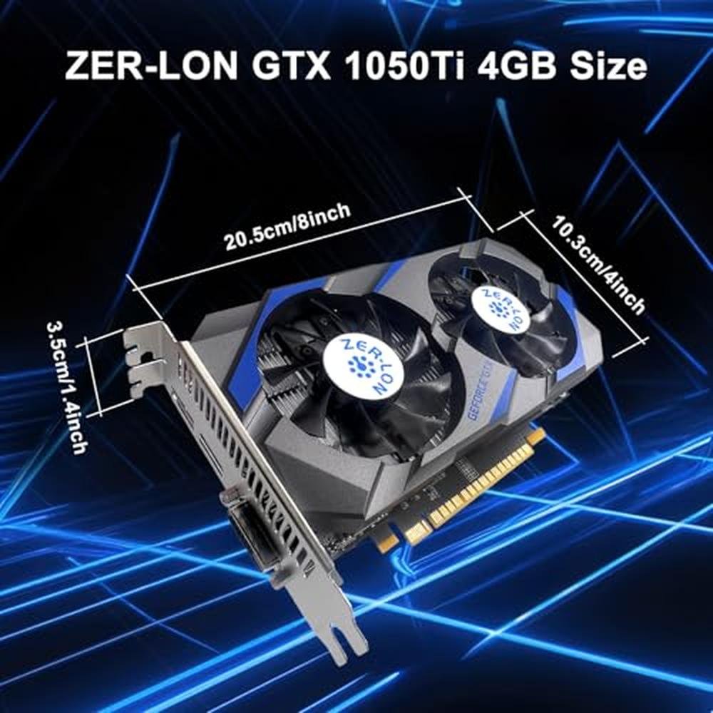 ZER-LON GeForce GTX 1050 Ti Gaming Graphics Card, 4GB GDDR5 128bit 1291MHz DP HDMI DVI-Output GPU, PCI Express 3.0 Support Up to 4K Video Card for Office and PC Gaming