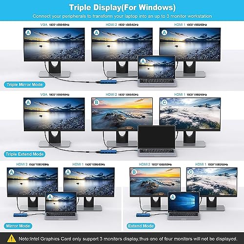 Ports Docking Station | HOPDAY 12 Ports USB C Hub with Triple Display HDMI VGA Ethernet SD TF Card Reader and 100W PD | Ultimate Connectivity