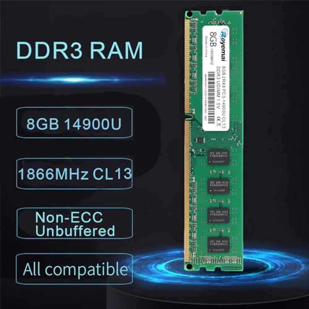 - DDR3 16GB Kit 1866MHz UDIMM RAM PC3-14900, DDR3 1866MHz, Unbuffered, Dual Rank, Non ECC, 1.5V CL13, apply for AMD, Intel, Mac system