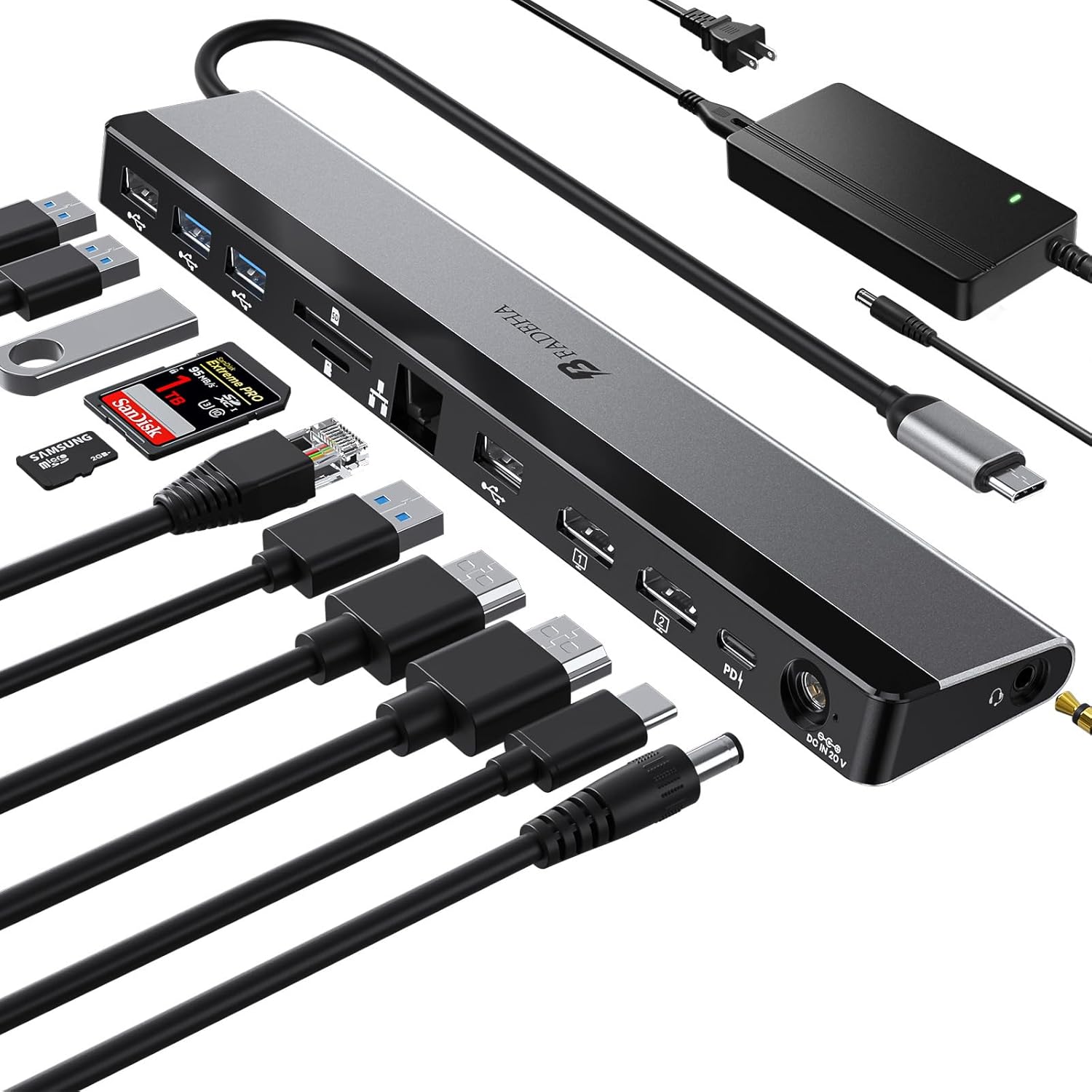 2025 Universal Docking Station with 100W PD, Triple Display Support, Dual Monitor Hub for Mac & PC, USB-C/USB-A, HDMI, 1Gbps Ethernet, Micro SD/TF & Audio Ports