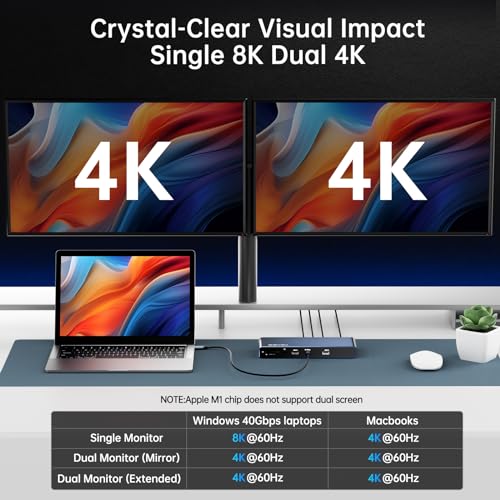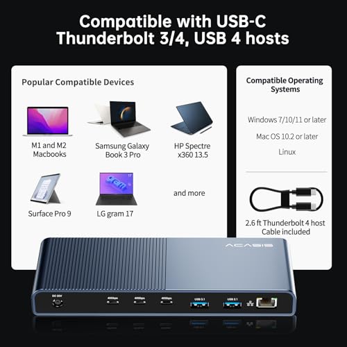 ACASIS 40Gbps Dock | Thunderbolt 4/3 & USB 4 Host Devices | 13-in-1 Laptop Docking Station with Single 8K60Hz or Dual 4K60Hz Display