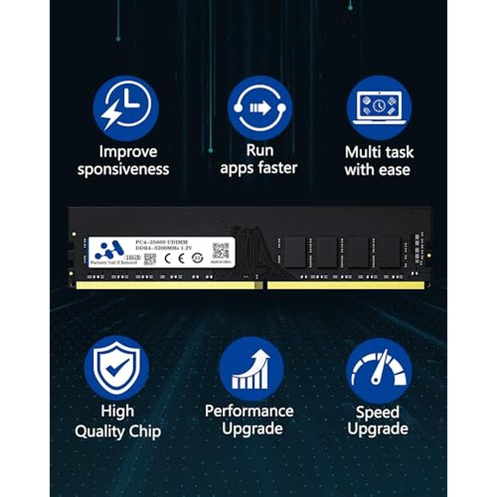 • 16GB DDR4 MEMORY The working Voltage is 1.2V, ECC Type is Non-ECC, RAM Memory Technology is DDR4,Computer Memory Size is 16GB,Pin Count is 288-pin, PC Speed is PC4-25600 and Memory Speed is 3200MHZ.