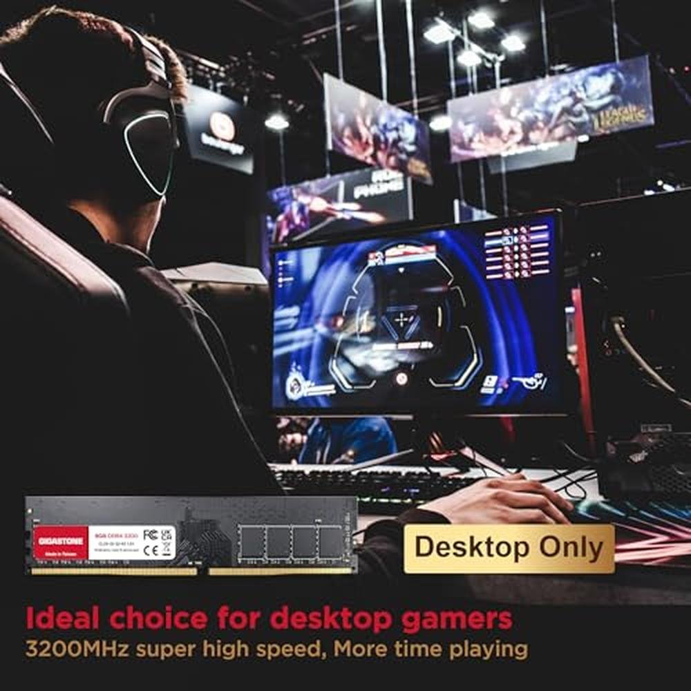 DDR4 RAM GIGASTONE 16GB Kit (2x8GB) DDR4 3200MHz (2933MHz or 2666MHz) PC4-25600 (PC4-23400 21300) CL22 1.2V UDIMM 288 Pin Unbuffered Non ECC High Performance PC Desktop Memory Upgrade
