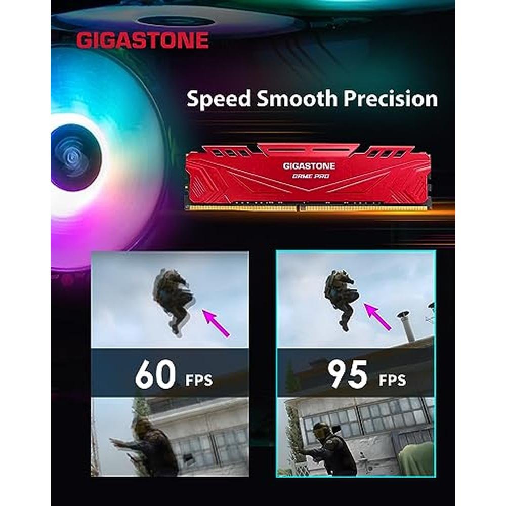 DDR4 RAM GIGASTONE Game PRO 32GB Kit (2x16GB) DDR4 3600MHz PC4-28800 CL 18-22-22-42 Intel XMP 2.0 AMD Ryzen 1.35V UDIMM 288 Pin Unbuffered Non ECC High Performance Gaming Desktop Memory - Red