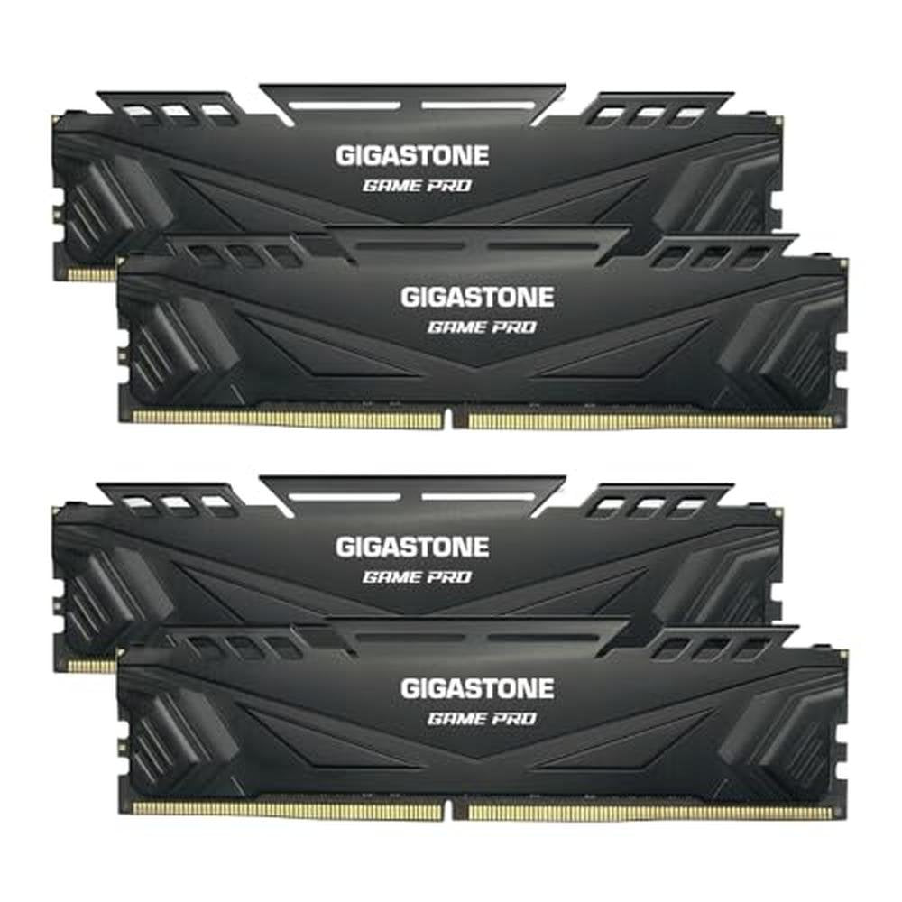 DDR4 RAM GIGASTONE Game PRO 64GB Kit (4x16GB) DDR4 3200MHz PC4-25600 CL 16-18-18-40 Intel XMP 2.0 AMD Ryzen 1.35V UDIMM 288 Pin Unbuffered Non ECC High Performance Gaming Desktop Memory - Black