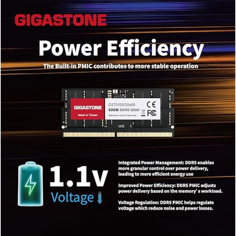 DDR5 RAM Laptop Only GIGASTONE 32GB DDR5 4800MHz PC5-38400 CL 40-40-40-77 1.1V SODIMM 262 Pin Unbuffered Non ECC High Performance Notebook Memory Upgrade