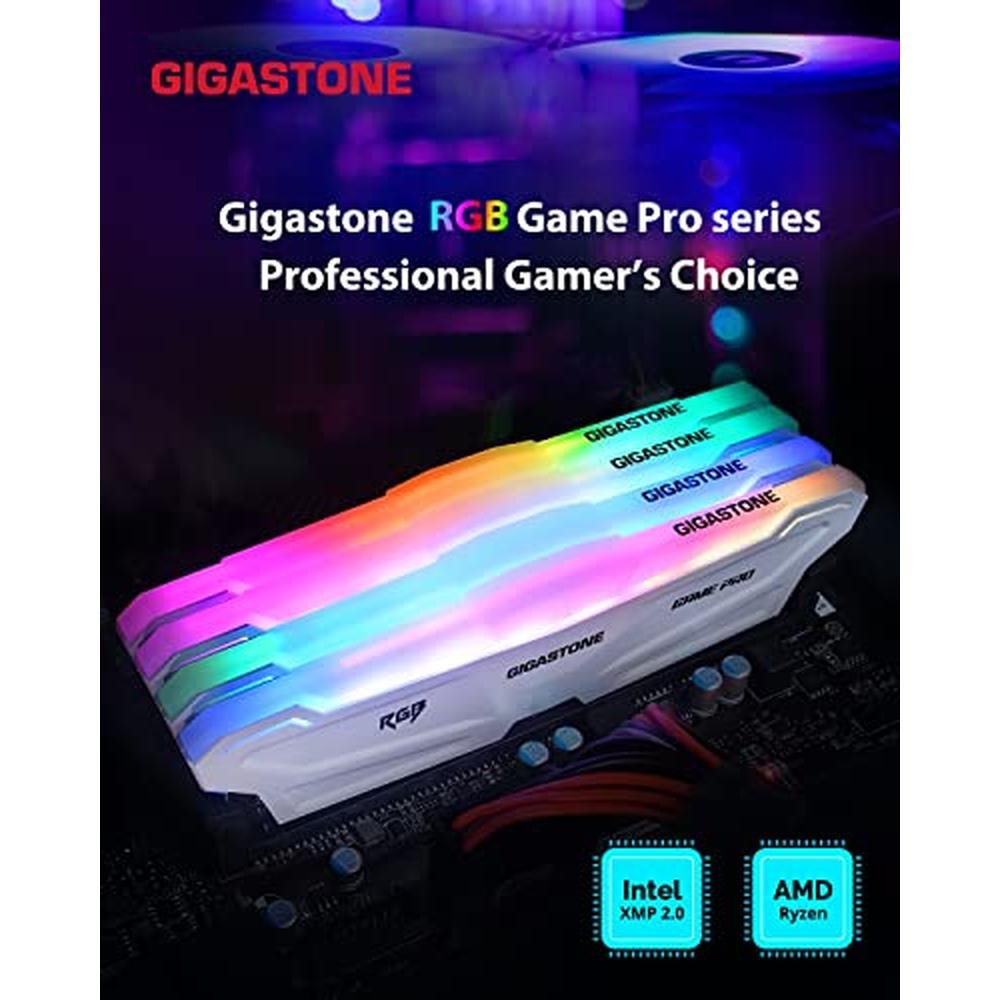 RGB DDR4 RAM GIGASTONE Game PRO 32GB Kit (2x16GB) DDR4-3200MHz PC4-25600 CL16-20-20-40 Intel XMP 2.0 AMD Ryzen 1.35V UDIMM 288 Pin Unbuffered Non ECC High Performance Gaming Desktop Memory - White