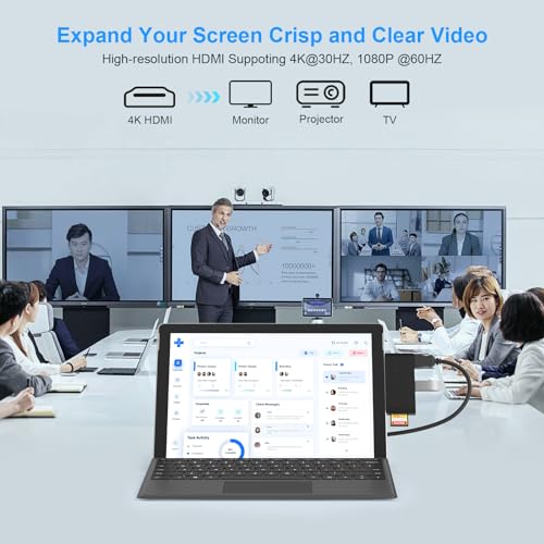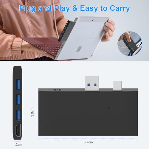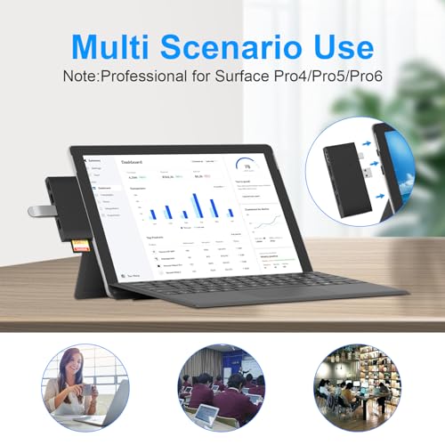 Immerse yourself in a seamless connectivity experience with our expertly designed Surface Pro 6/Pro 5/Pro 4 docking station, crafted to elevate your Surface Pro experience. As a premium Surface Pro accessory, this USB hub with HDMI offers a comprehensive solution for your Surface Pro 4, 5, or 6, providing a convenient dock for your device. With a built-in SD micro card memory card reader and a 4K HDMI adapter, you can effortlessly connect to external monitors, transfer data, and enjoy high-definition video output. This Surface Pro docking station features 1 x USB 3.0 port for fast data transfer and 2 x USB 2.0 ports for connecting peripherals, making it an ideal Surface Pro 4/5/6 accessory.