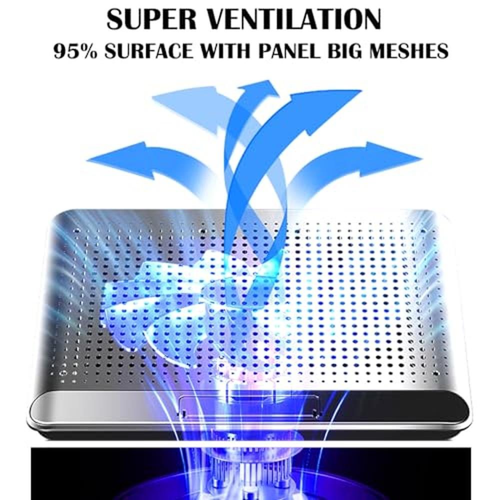 - NEW MATERIAL with ALUMINUM PANELInstead of normal small-iron-meshes, we take big Aluminum-panel-meshes as surface for stronger Heat Dispersion. Because aluminum is extremely strong, it is rustless like stainless and also very resistant to scratching, that means this cooler can stay durable and new after months using.