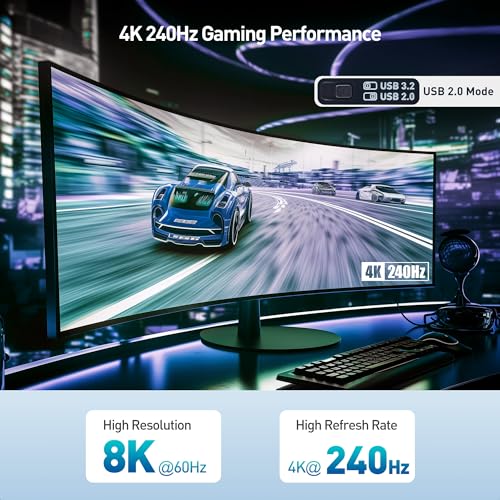 Indulge in unparalleled connectivity with the Cable Matters 8-in-1 USB C Hub, boasting a DisplayPort 1.4 connection that effortlessly supports breathtaking 8K@60Hz or 4K@240Hz resolutions. As a superior displayport cable alternative, this USB C dock presents a convenient solution for expanding your device's capabilities. With a seamless displayport to hdmi conversion capability, you can effortlessly connect to HDMI-compatible displays, rendering it an exceptional choice for those seeking a reliable and high-performance displayport cable solution. The hub also features a gigabit Ethernet port, USB 3.2 port, SD card reader, and a two-mode switch, ensuring a premium-grade connectivity experience. Elevate your productivity and entertainment with this sophisticated USB C hub, expertly designed to redefine the boundaries of high-end connectivity.