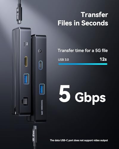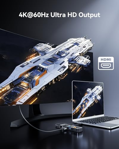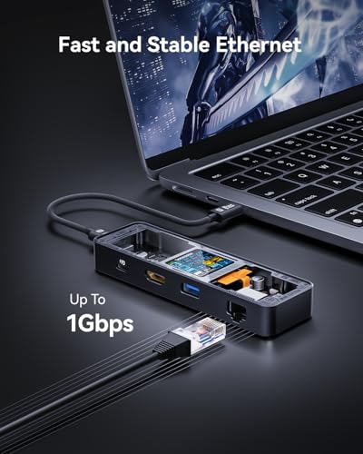 • Features a 6-in-1 design with HDMI port, Gigabit Ethernet port, USB-C port, and two USB-A 5Gbps data ports