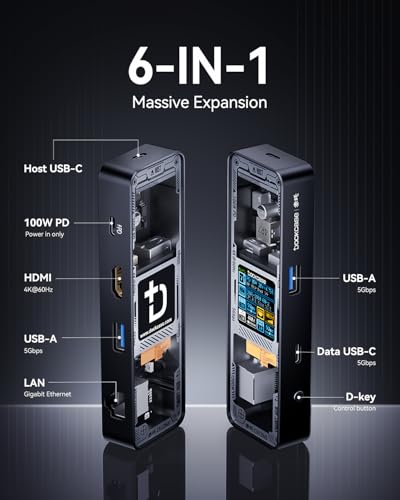 Experience the ultimate in workflow optimization with the Dockcase Explorer Edition, a premium 6-in-1 visual smart USB C hub designed to unlock the full potential of your MacBook Air/Pro, XPS, and other compatible devices. This sleek and compact hub features an HDMI port capable of delivering stunning 4K@60Hz video output, a Gigabit Ethernet port for fast and reliable internet connectivity, a USB-C port with 100W PD power delivery, and two USB-A 5Gbps data ports for seamless data transfer. With its advanced features and robust design, the Dockcase Explorer Edition is the perfect solution for professionals and individuals seeking a high-performance, top-tier USB C hub. Elevate your productivity and transform your workflow with this exceptional device.