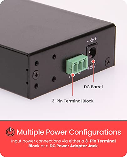 • Includes both DIN-Rail and mounting brackets for multiple mounting options, with a built-in power LED indicator