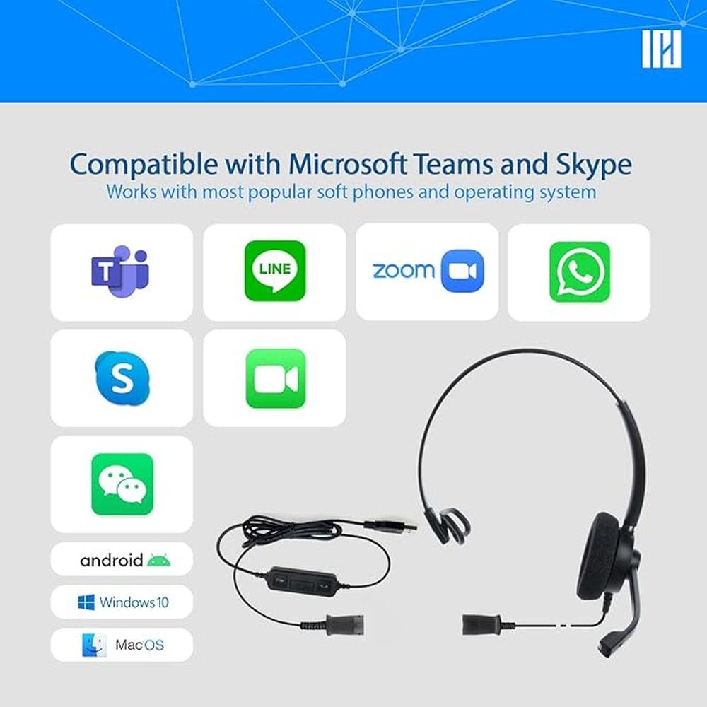 IPD IPH-160 USB Headset with Noise Cancelling Microphone for Office and Call cengter- Compatible with Skype, Microsoft Teams, Cisco Jabber, Avaya One-X and Other Soft Phones