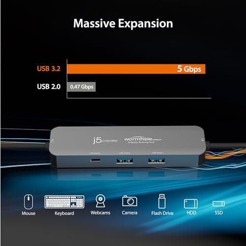 Screen Sharing Hub | j5create JCH462 Wormhole Switch Display KVM | Premium USB 3.1 File Transfer Solution