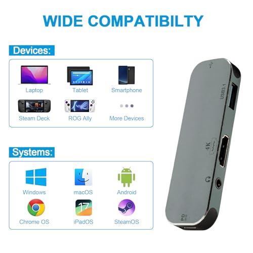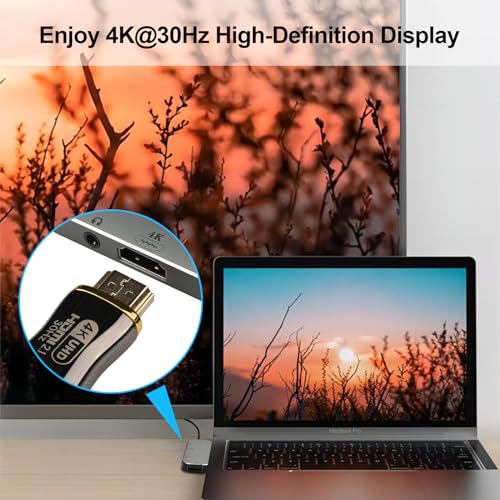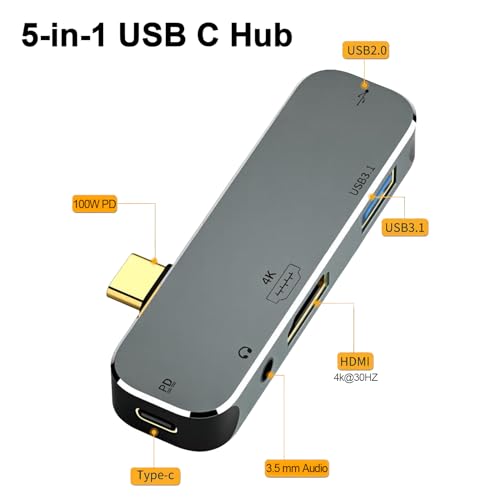 - Expand your device's capabilities with a 5-in-1 multi-port adapter, featuring 4K 30Hz video output, 100W PD charging, and 3.5mm audio output.