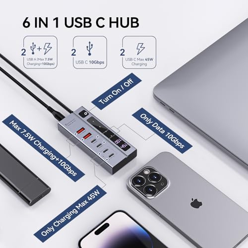 Hub Minisopuru | Minisopuru Powered USB C Hub 6-in-1 with 45W Charging and 10Gbps Data Transfer | Ultimate Connectivity Solution