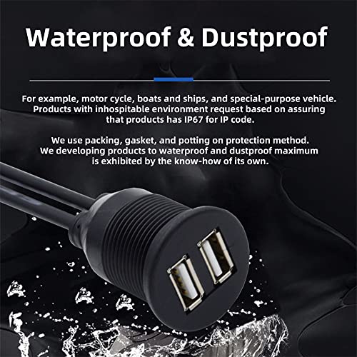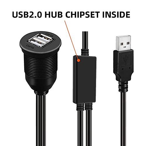The cable features a USB2.0 hub chipset inside, allowing the dual USB female ports to work simultaneously. It also boasts a waterproof panel/dash mount, designed for in-car use but versatile enough for any application. The package includes 1pc waterproof USB car mount cable, and the vendor delivers within 10+ business days.