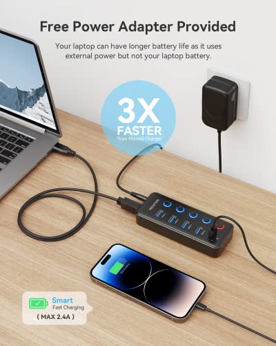 - This premium powered USB hub is equipped with 1 smart charging port, providing optimal charging for your devices