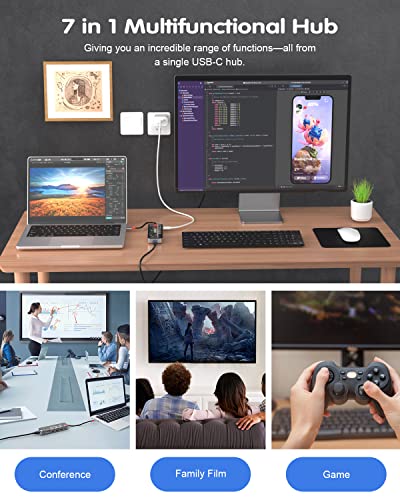 - The Sutoug 7 in 1 USB C Hub features a 7-in-1 design, allowing for the connection of multiple devices including USB peripherals and HDMI displays.