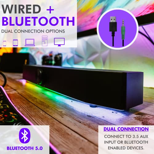 Tilted Nation Gaming Soundbar | TNPHASER USB Computer Sound Bar | Immersive RGB Audio