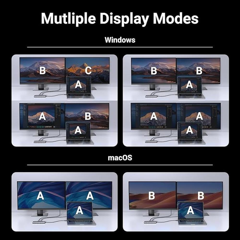 • Experience the benefits of advanced noise reduction technology, with dual HDMI ports supporting 4K 60Hz and single 8K 30Hz resolutions, and 100W Power Delivery for fast charging and data transfer.