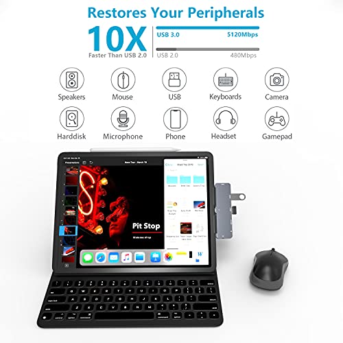 iPad Hub | USB C HUB for iPad Pro, iPad Air, and iPad mini | 4K HDMI, 3.5mm Headphone Jack, 2 USB 3.0 Ports, USB C PD Charging