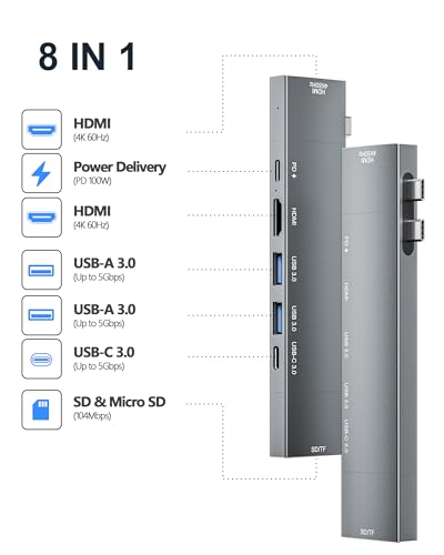 MacBook Hub | USB-C Hub 8-in-2 for MacBook Pro and Air | Dual 4K 60Hz HDMI and USB-A Ports