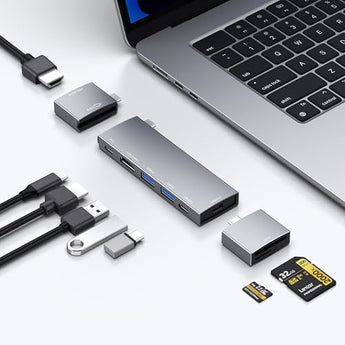 Experience the pinnacle of connectivity and productivity with our premium USB-C hub, meticulously designed for MacBook Pro 13 Inch, MacBook Air M1 M2 M3, iPad, Dell XPS, Lenovo Thinkpad, and HP laptops. This exquisite, compact MacBook hub boasts an impressive array of features, including 2 HDMI ports capable of delivering stunning 4K resolution at 60Hz, enabling seamless dual-monitor setups for an elevated workflow. Furthermore, this sophisticated USB-C hub features 2 USB-A data ports and a microSD/SD card reader, ensuring effortless data transfer and expansion. Elevate your productivity and immerse yourself in a world of unparalleled connectivity with our top-tier, high-performance USB-C hub, expertly crafted to meet the discerning needs of premium MacBook users.