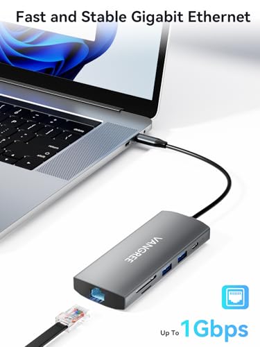 USB C Hub with Dual 4K@60Hz DisplayPorts | VANGREE 10-in-1 Docking Station | 100W PD & 1Gbps Ethernet
