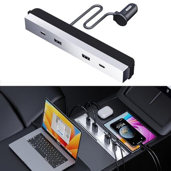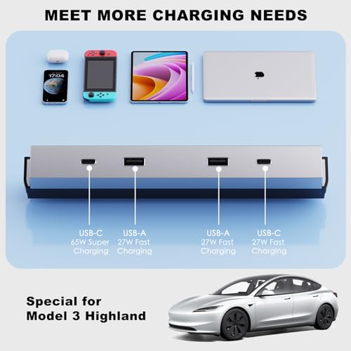 Experience the ultimate driving experience with the Vugosson USB Hub, specifically designed for the Tesla 2024 Model 3 Highland Center Console. This premium accessory provides fast charging capabilities, ranging from 27W to 65W, ensuring your devices stay powered on the go. As a top-tier Tesla 2024 accessory, the Vugosson USB Hub is perfect for those looking to enhance their Tesla Model 3 Highland 2024 docking station. With its sleek design and seamless integration, this USB hub is a must-have for Tesla 2024 owners. This innovative accessory is customized to fit the Tesla Model 3 Highland 2024, eliminating the inconvenience of limited charging ports on the center console, and bringing convenience to both drivers and passengers.
