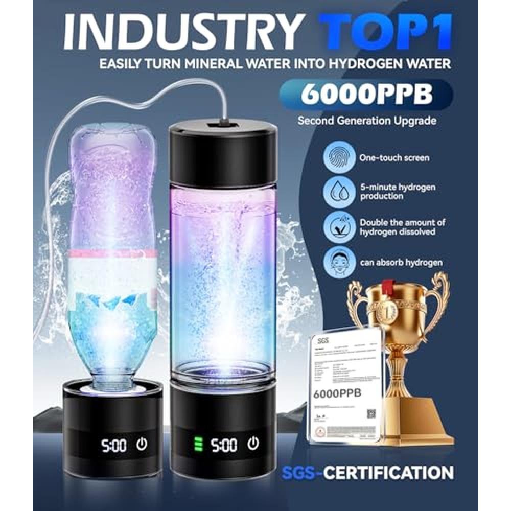 4.0 Upgrade Hydrogen Water Bottle & Hydrogen Absorption SGS Certification - 6000PPB Hydrogen Water Bottle - 2025 SPE PEM Technique NO.1-100% Odorless Applicable to Various Water