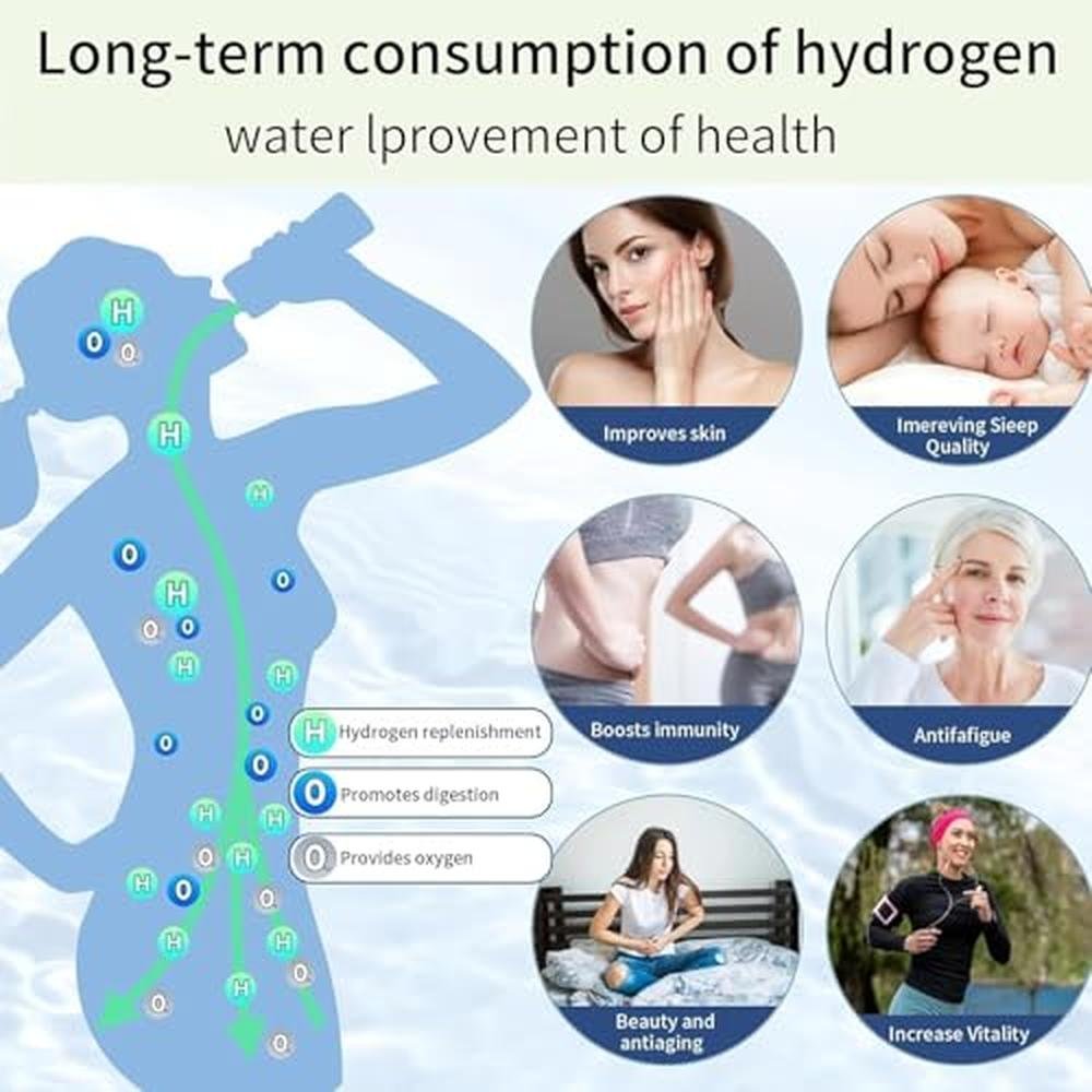 - Upgraded Hydrogen Water BottleUnlike other hydrogen water bottles in the market, this upgraded version can electrolyze all water types, including purified and distilled water. It uses SPE and PEM technology with ion membrane, generating hydrogen ions up to 1000-1600ppb in just 3 minutes. This transforms ordinary drinking water into hydrogen-rich alkaline water, providing you with superior quality drinking water.Do not add juice, milk, or tea.