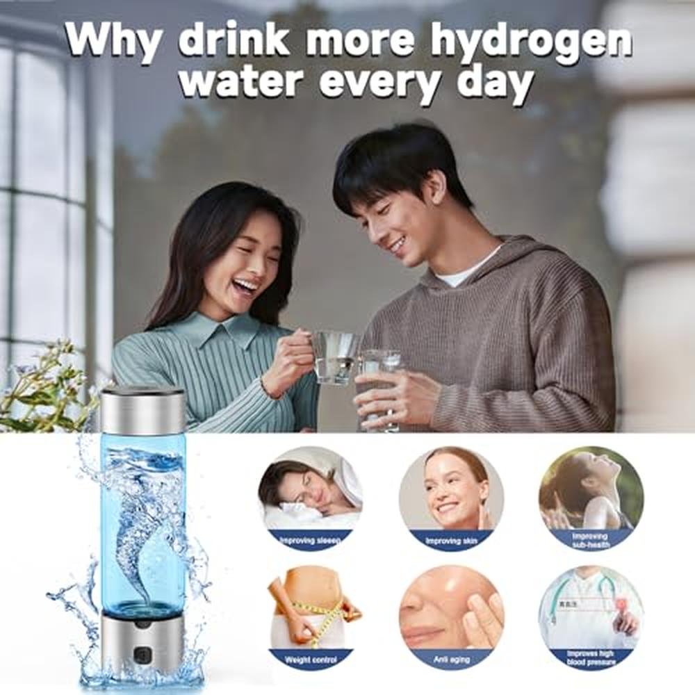 - 2 in 1 Hydrogen Water Bottle Generator: Our portable hydrogen water generator machine offers 2 different usage modes, you can drink hydrogen water directly or inhale hydrogen through the included tube. It is perfect for muscle recovery after exercise or daily quick energy replenishment. Let you enjoy pure hydrogen-rich water at home, in the office or outdoors, and easily replenish water anytime, anywhere. (NOTE: when inhaling hydrogen, you only need to add 1/3 of the bottle of pure water)