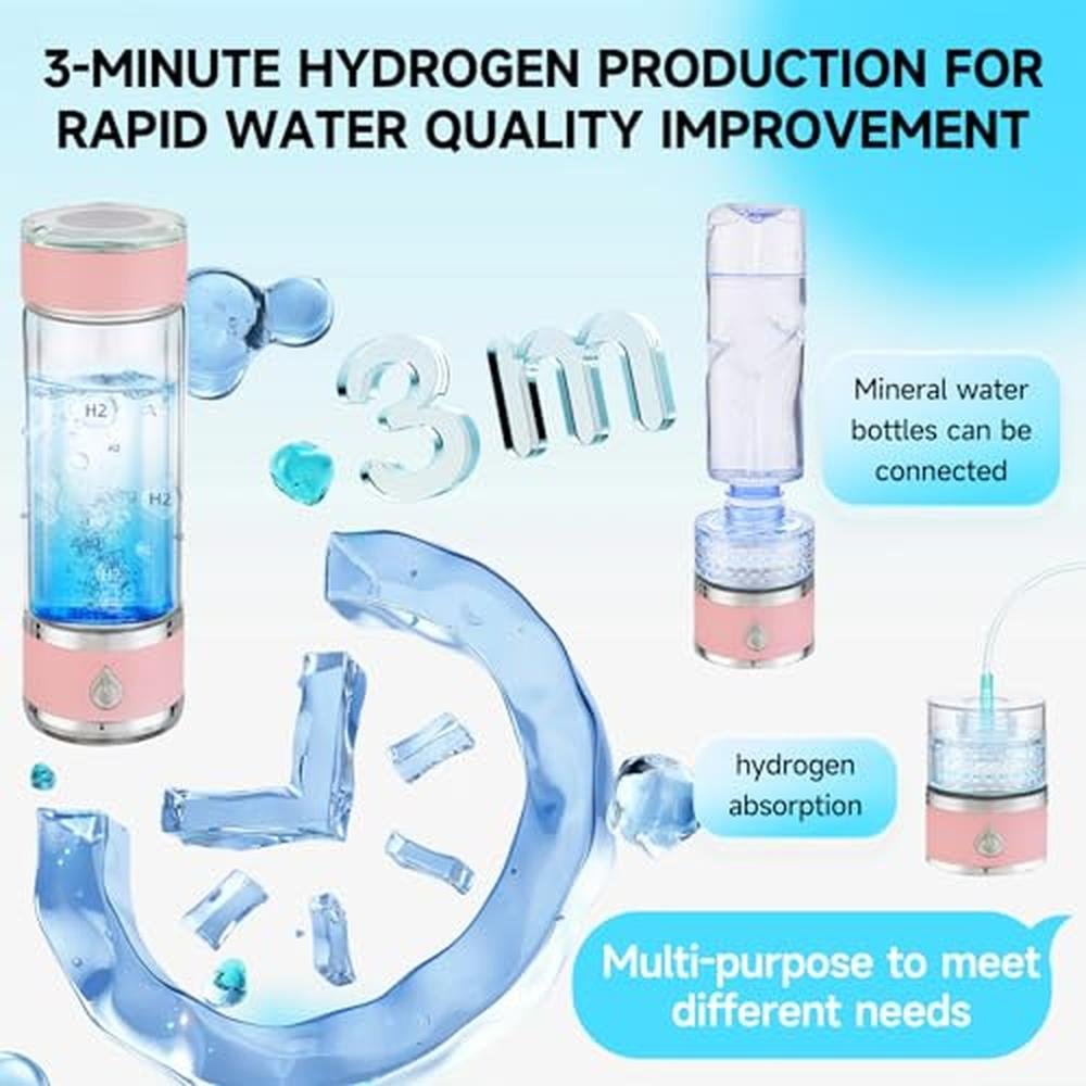 - Boost Your Well BeingWith just one press, our portable hydroh hydrogen water bottle activates and generates 4100 ppb of H2 in 3 minutes, transforming regular water into alkaline hydrogen - rich water. You can even increase hydrogen ion concentration by extending operation time. Hydrogen infused water is popular for supporting overall wellness and boosting vitality, fitting into a balanced lifestyle. It helps enhance metabolism and supports cellular health. Drinking 3 cups of hydrogen - rich water daily can keep you energized throughout the day.