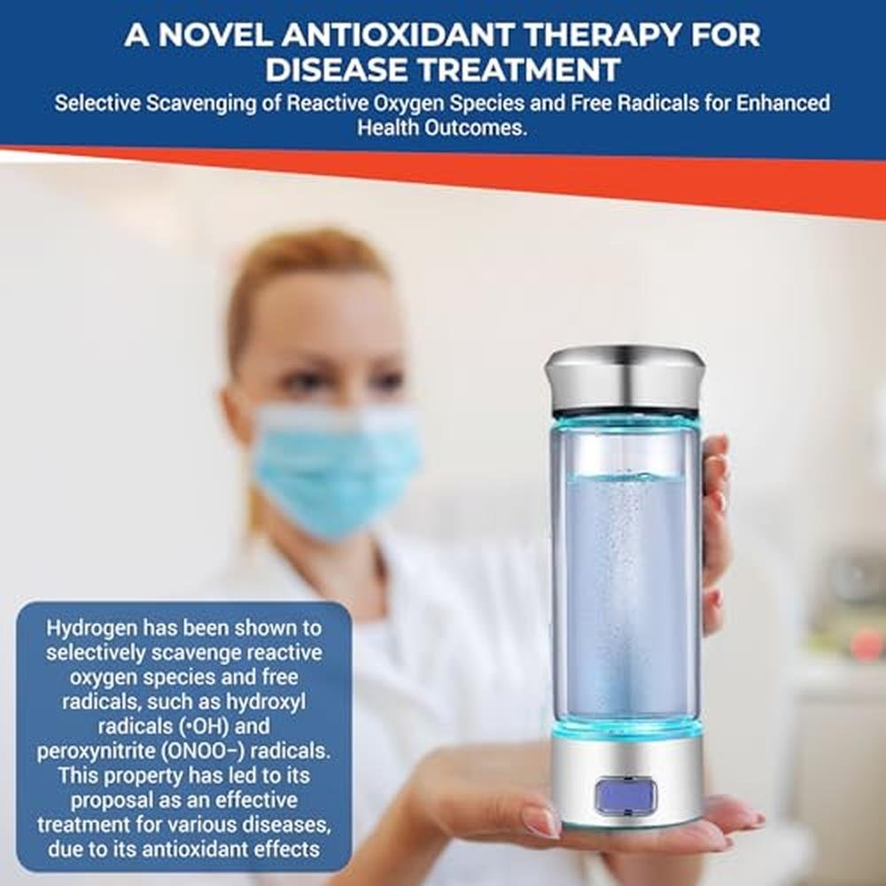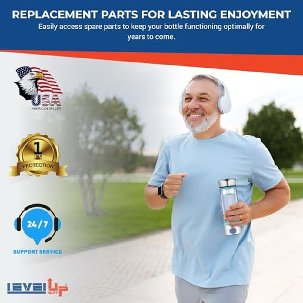 Meet the LevelUpWay 2025 Improved Glass Hydrogen Water Bottle Generator, designed for premium hydration. Utilizing advanced SPE PEM technology, this innovative bottle generates up to 3000 PPB of molecular hydrogen in a fast 3 minute cycle, maximizing the benefits of hydrogen-enriched water. Its premium 300ml thick glass construction provides both elegance and durability, while the LED display makes it easy to monitor the hydrogen infusion process. The leak proof design ensures portability, making it ideal for use at home, the office or on the go.