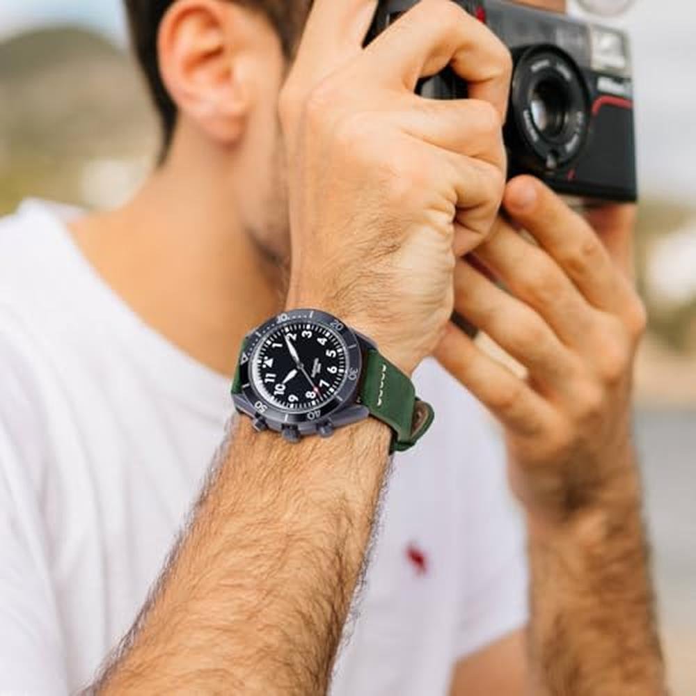 - Strap Material: Crafted from saddle leather, a premium pull up leather that is durable, flexible and comfortable to wear. Gently scratch the leather surface, you will find that the color of the leather scratches will change to a lighter color and it will return to the original color after being wiped with a cloth.
