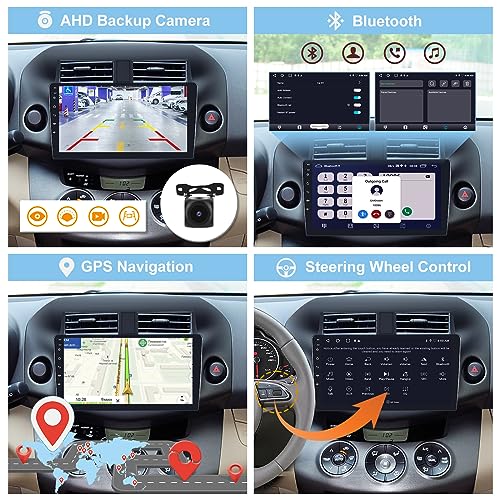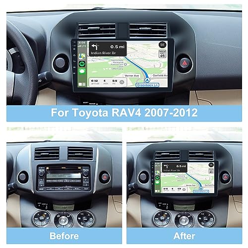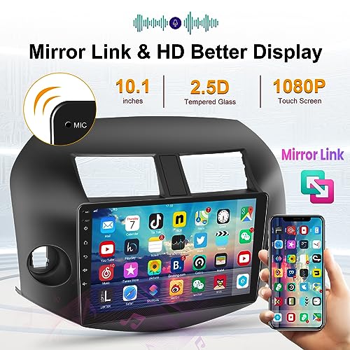 [2G+32G] Car Radio for Toyota RAV4 2007 2008 2009 2010 2011 2012, 10.1 inch Android Touch Screen Stereo, Carplay/Android Auto/Mirror Link/1080P/SWC/Bluetooth/WiFi +AHD Backup Camera+MIC
