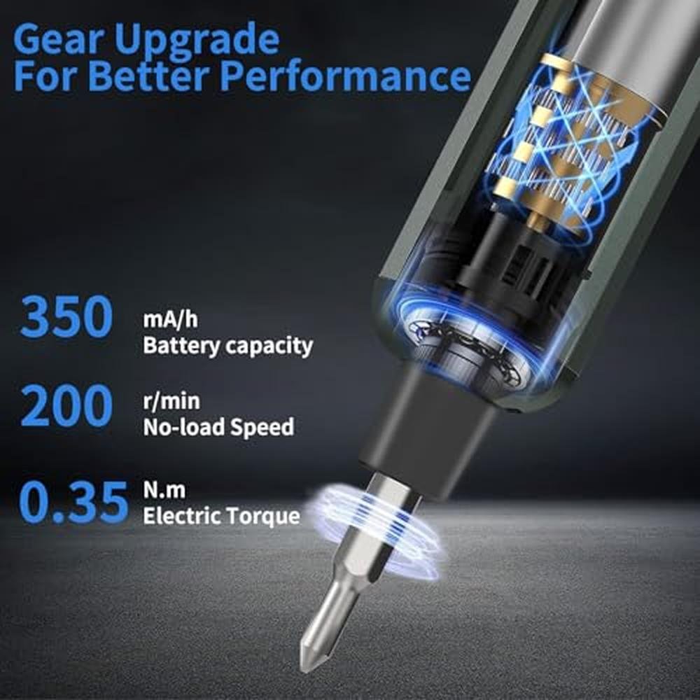 • High-Efficiency Lithium BatteryEquipped with a 350mAh high-performance lithium battery, it charges in just 1 hour and it can drive over 1000 screws on a full charge, ensuring long-term reliable operation, reducing frequent charging and significantly improving work efficiency.