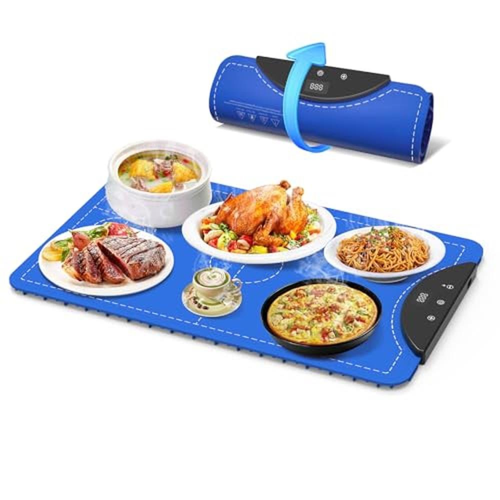 Aganippe Electric Warming Tray Electric Warming Mat for Food Silicone Food Warming Mat for Buffet Roll Up Full Surface Heating Real-Time Temp Display 5 Level Temperature Auto Shut-Off