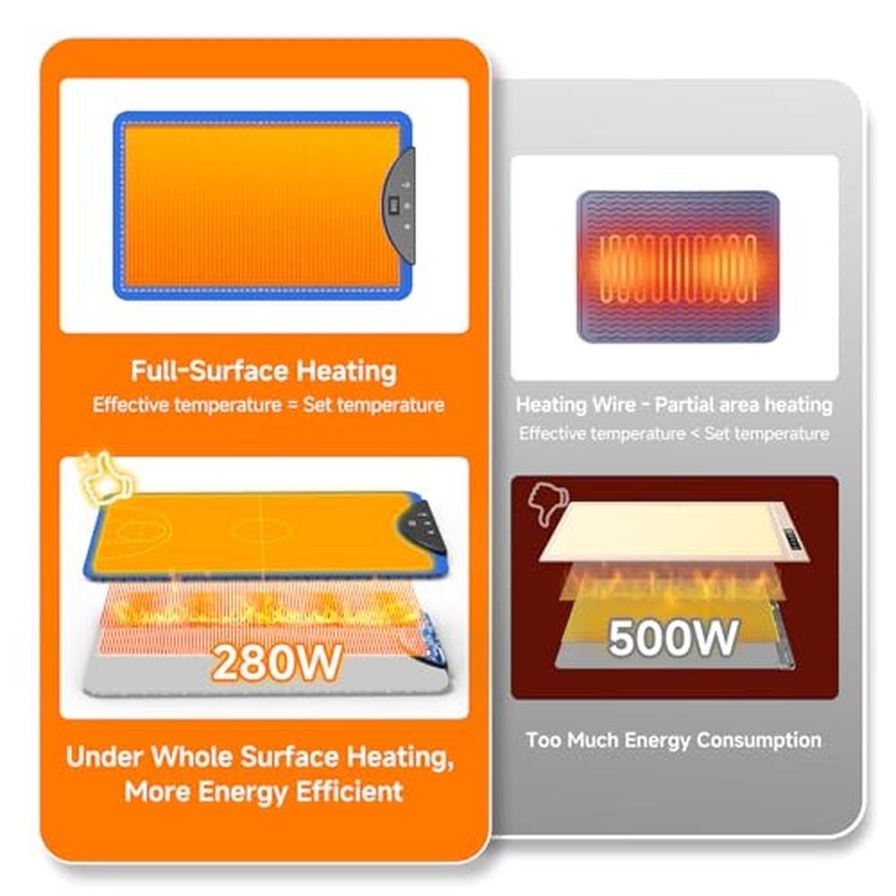 • Rapid Full-Surface HeatingOur roll up warming mat for food is equipped with a 280W full surface heating film and adopts advanced directional heating technology.With its excellent thermal conductivity, the electric warming tray can quickly heat up within a few seconds on the full surface.New technology and materials enable the electric food warming mat to heat up faster at lower power.