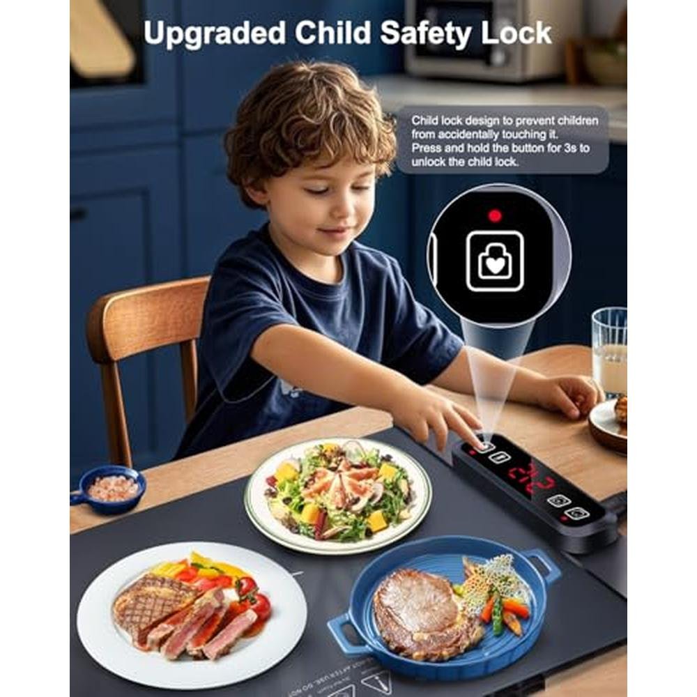 AUTOPkio Food Warming Mat, Rapid-Heat Electric Warming Tray with 5 Adjustable Temperature Settings, 1-4H Auto Shut-Off Timer & Child-Safe Lock, Roll-Up Design for Buffets, Parties & Family Gatherings